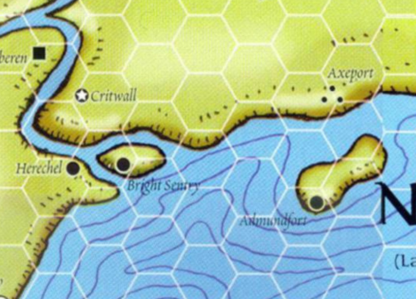 Critwall I reason is located where it is due to both good access to river and lake traffic and by placing it on a slightly elevated peninsula gives is both good flood protection and makes it easier to defend. The next major settlement along the coast eastward being Axeport some 70 miles to the east gives us a lot of coastline to detail.